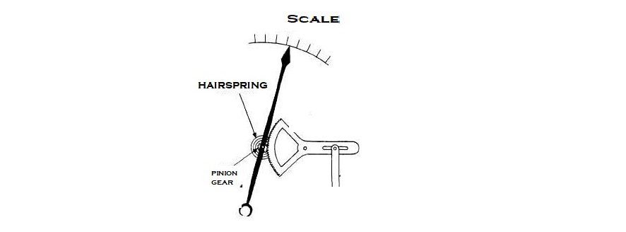 Hair spring is a part of gear assembly. It is very thin and in spiral shape. Hair spring is connected to pinion and play role to remove pointer play.
