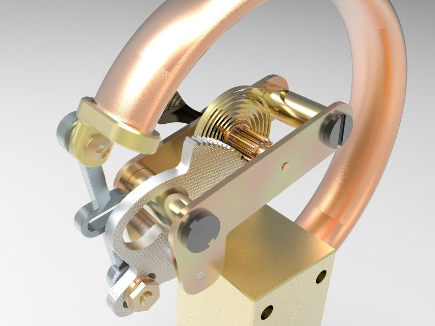 As its name suggests, the linkage of Borden tube connects the tube to the gear mechanism. As the Borden tube flexes upon application of pressure, the linkage transmits the motion of the Borden tube to the gear mechanism to activate the gear.