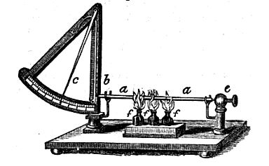 An old pyrometer from 1852. When a metal bar is heated, it presses against a lever, moving the pointer (c) along a scale that acts as a measuring index. An immovable object (e) holds the bar in place. The index will drop back as the bar cools due to a spring on (c) pushing on (b). Image Credit- Wikipedia